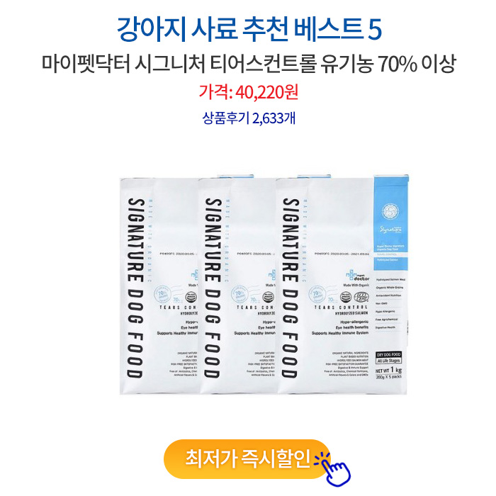 5위 마이펫닥터 시그니처 티어스컨트롤 유기농 70% 이상 강아지 사료