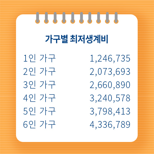 가구별 최저생계비는 아래표를 확인하세요.