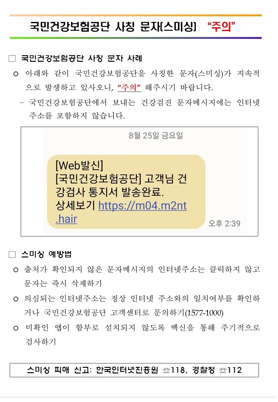 건강검사보험 통보문 스미싱 문자 대처 방법