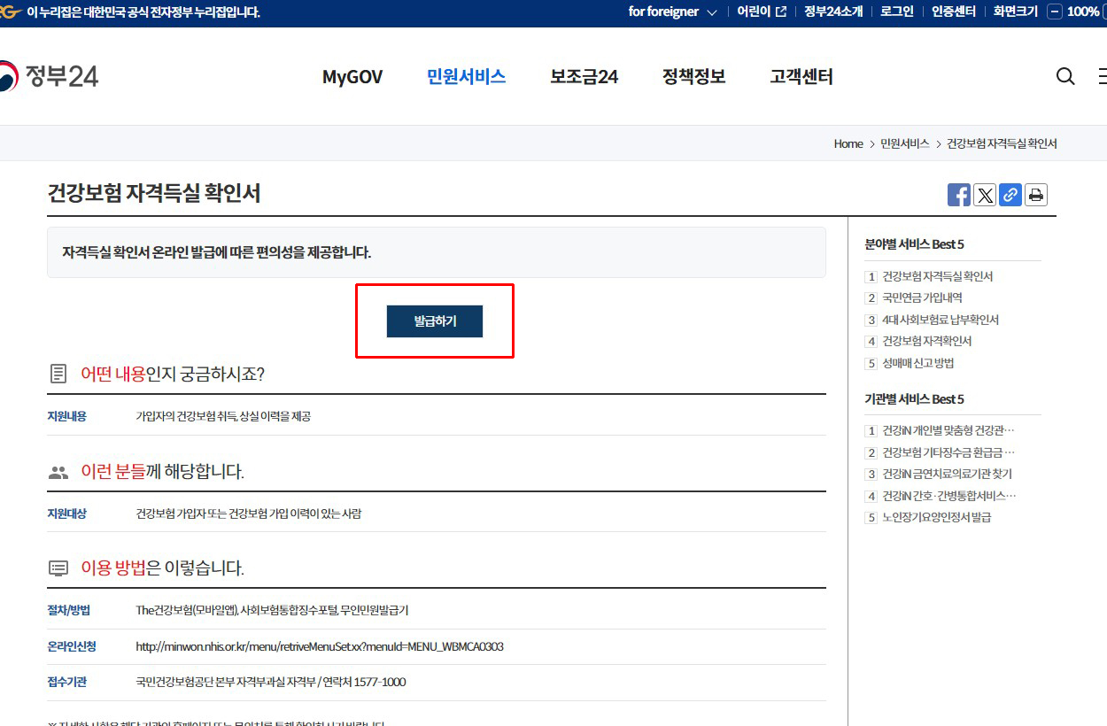 정부24에서도 건강보험 자격득실확인서를 발급받을 수 있습니다.