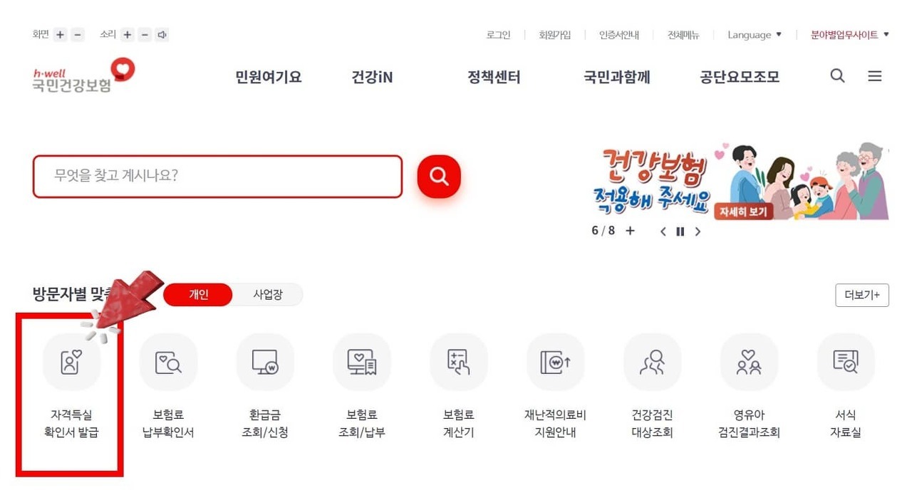 1. 국민건강보험공단 홈페이지에 접속