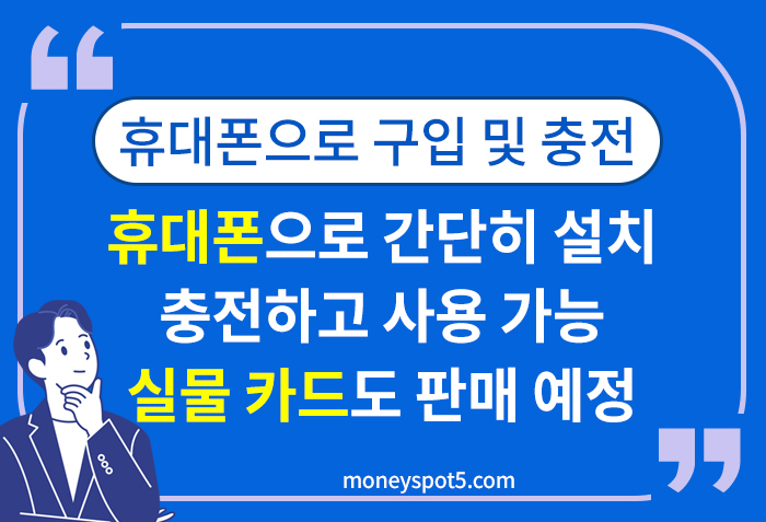 - 실물 카드도 제공될 예정이며, 이 경우 실물 카드를 구매(3천 원)한 후 충전해서 사용할 수 있습니다.