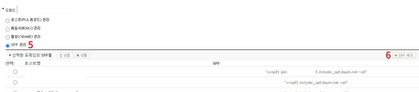 3. v=spf1 include:_spf.daum.net ~all 입력하기
