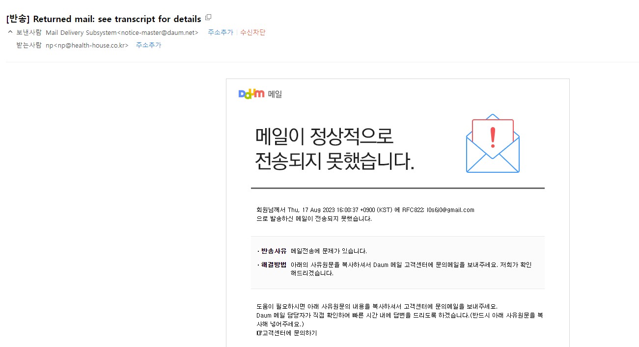 다음 메일을 사용하고 있는 와중에 구글 메일로 발송했는데 자꾸 반송 메일이 오는겁니다.