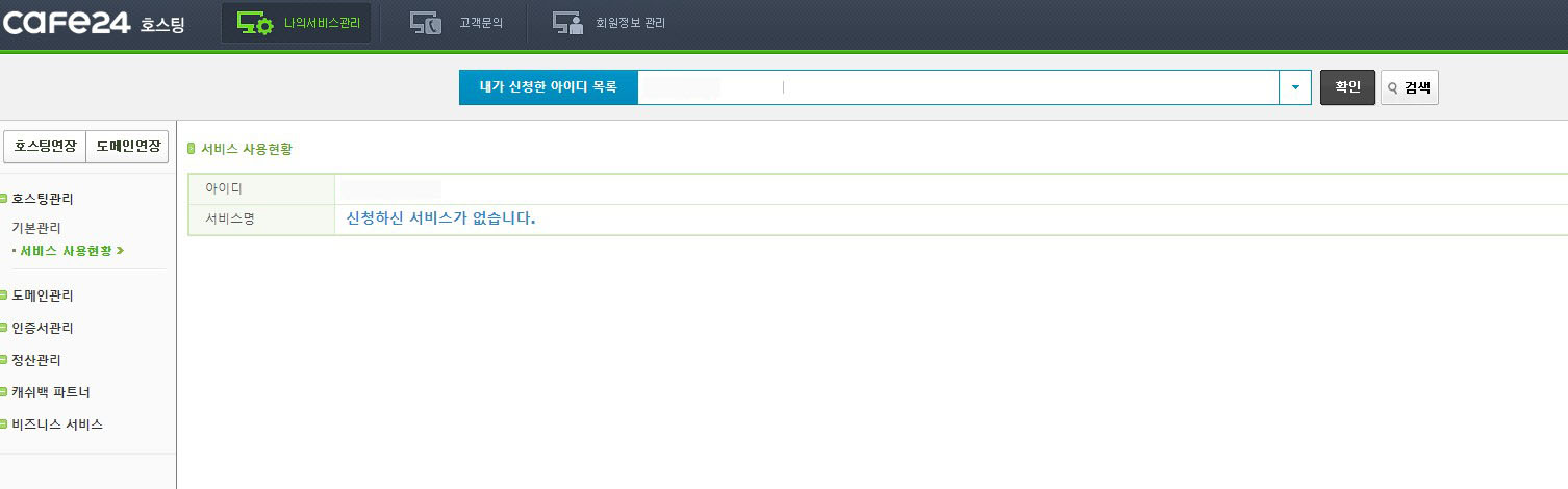 저희가 이용하는 호스팅 업체는 카페24였고, 네이버에 '카페24 호스팅' 이라고 쳐서 카페24 관리자 페이지에 로그인 했습니다.