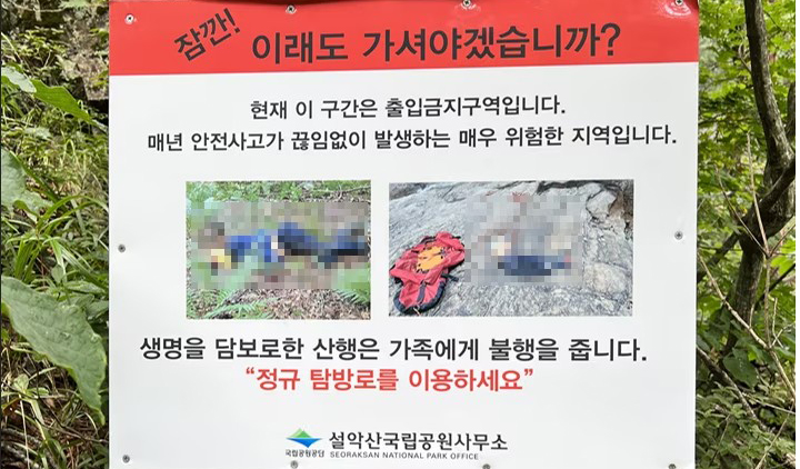 “이래도 갈래?” 추락사 시신 사진 그대로 경고판에 쓴 설악산 국립공원 논란