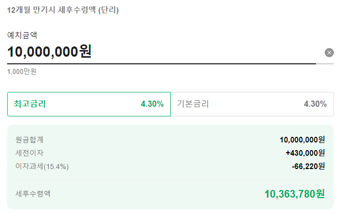 • 이율 기본: 연 4.30% (12개월, 세전)