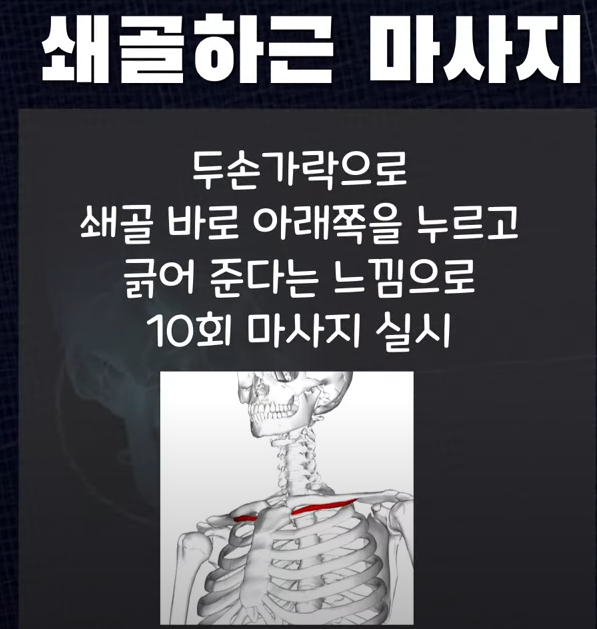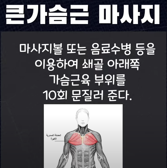 쇄골하근 마사지와 큰가슴 마사지를 하고 나면 하기 전보다 통증이 완화된 것을 느끼실 수 있을 겁니다.