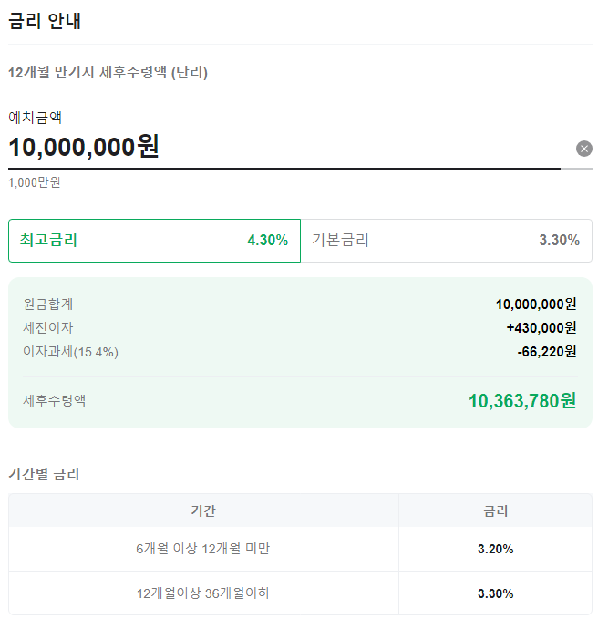 - 기본금리: 연 3.30% (12개월 기준, 세전)