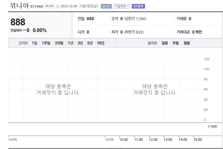 위니아는 종가 888원으로 마치며 현재 거래정지 중인 상태입니다.