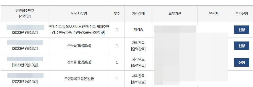 | 전입신고 | 전입신고 사실을 세대주, 건물, 시설, 소유자 또는 임대인에게 통보 |