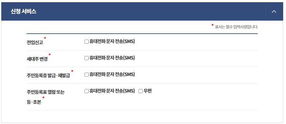 5) 휴대전화 번호가 변경된 경우에는 변경 신청을 해야 합니다. 변경 신청을 하지 않는 경우 관할 읍ㆍ면ㆍ동장 또는 출장소장이 직권으로 통보 서비스를 해지할 수 있습니다.