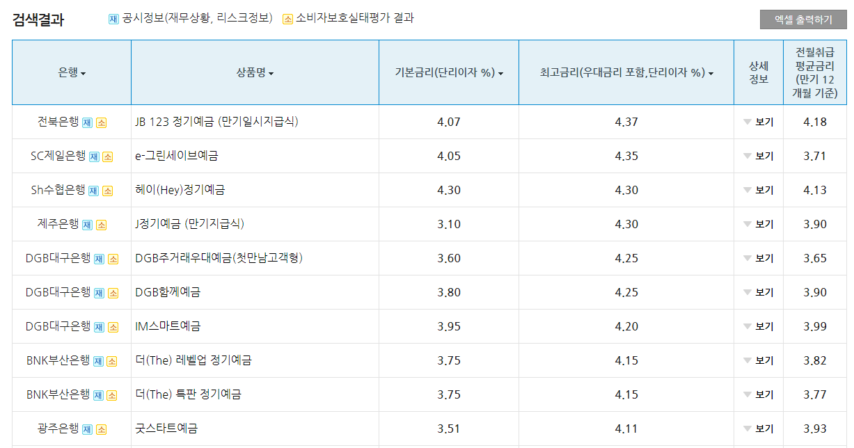정기예금 금리비교 TOP10을 확인해보시고 앞전 칼럼에서 높은 이자 주는 곳을 확인해보실 수 있으니 참고해보시길 바랍니다.