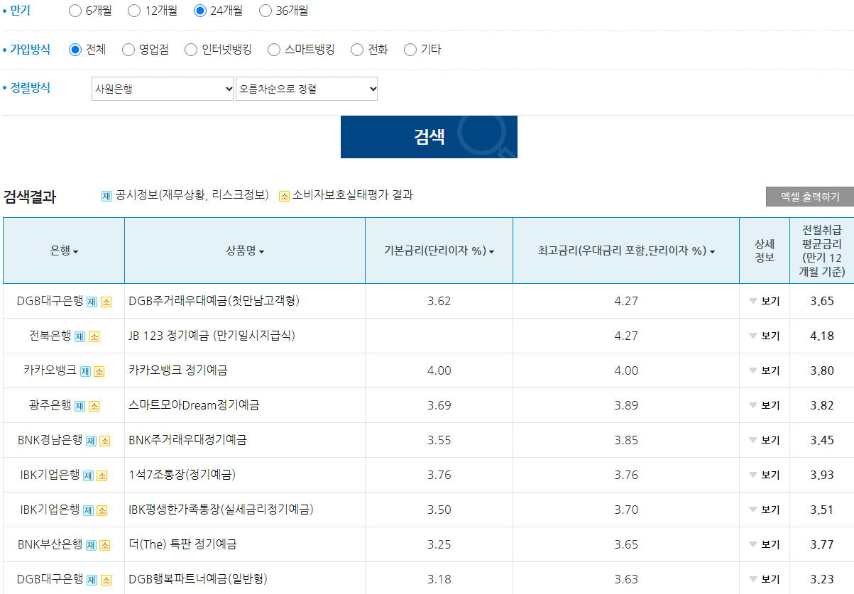 기본금리 순으로 해도 되고 최고 금리 순으로 확인해보셔도 됩니다.