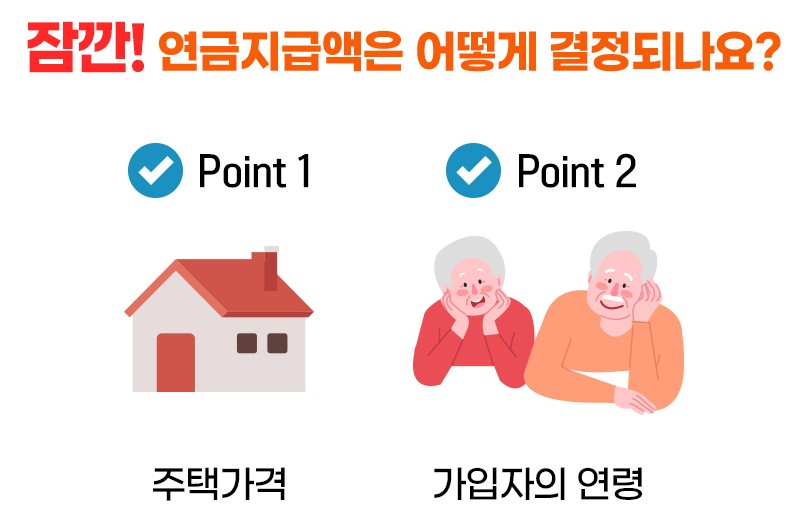 - 주택가격이 동일한 경우, 연령이 높을수록 연금 지급액이 더 많아지며, 연령이 낮을수록 지급액이 줄어듭니다.