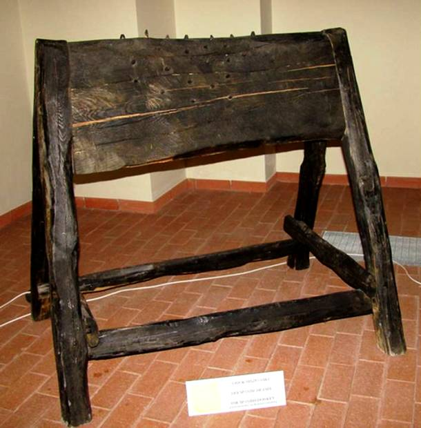 희생자의 발목에 무거운 추를 매달거나 가해자들이 점차적으로 무게를 가중시키면서, 이 기구의 뾰족한 부분이 희생자의 몸을 천천히 자르고 찢으며 심각한 내부 손상을 일으켰습니다. 이 고문은 특히 하체와 중요한 내부 장기에 치명적인 영향을 끼쳤으며, 희생자에게 극심한 고통과 지속적인 상해를 입혔습니다.