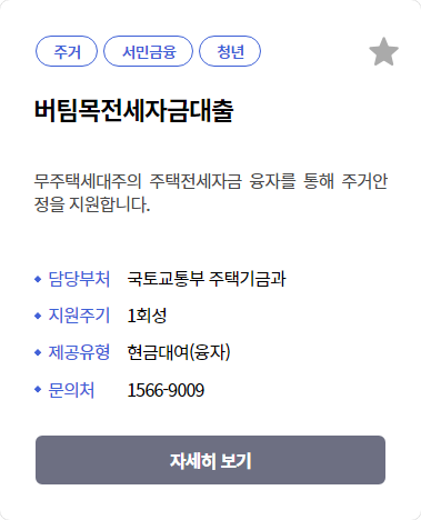 - 전세보증금 : 수도권 3억원(지방 2억원) 이하 * 2자녀이상 가구는 수도권 4억원, 지방 3억원 이하