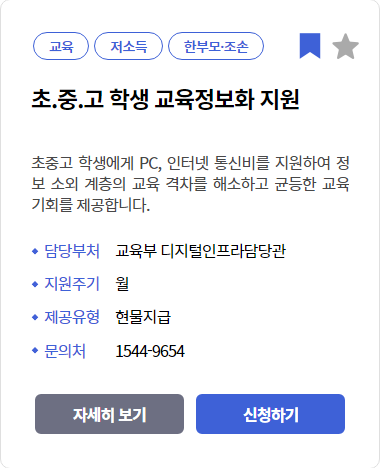 혜택: 학생용 PC, 인터넷 통신비 지원.