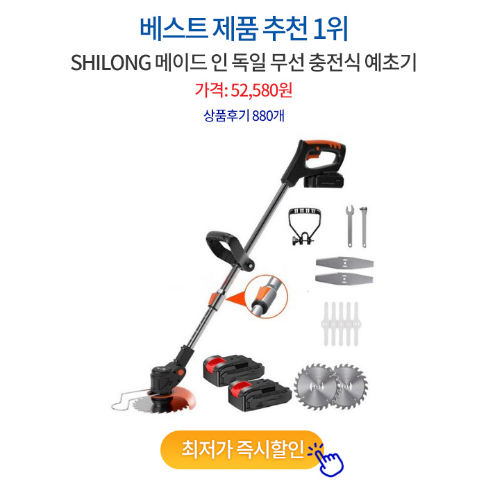 충전식 예초기도 만든 브랜드마다 가격과 성능이 다 다른데 판매 BEST5 제품들을 추천해 보겠습니다.