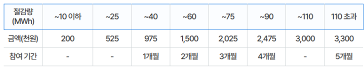 - 절감량에 따라 구간별 정액 지급: 더 많이 절약할수록, 더 많이 받아요!