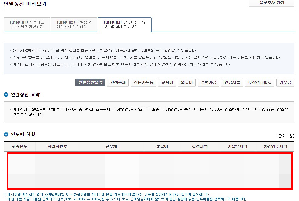STEP 3: 연말정산 예상세액 계산 및 절세 팁 확인